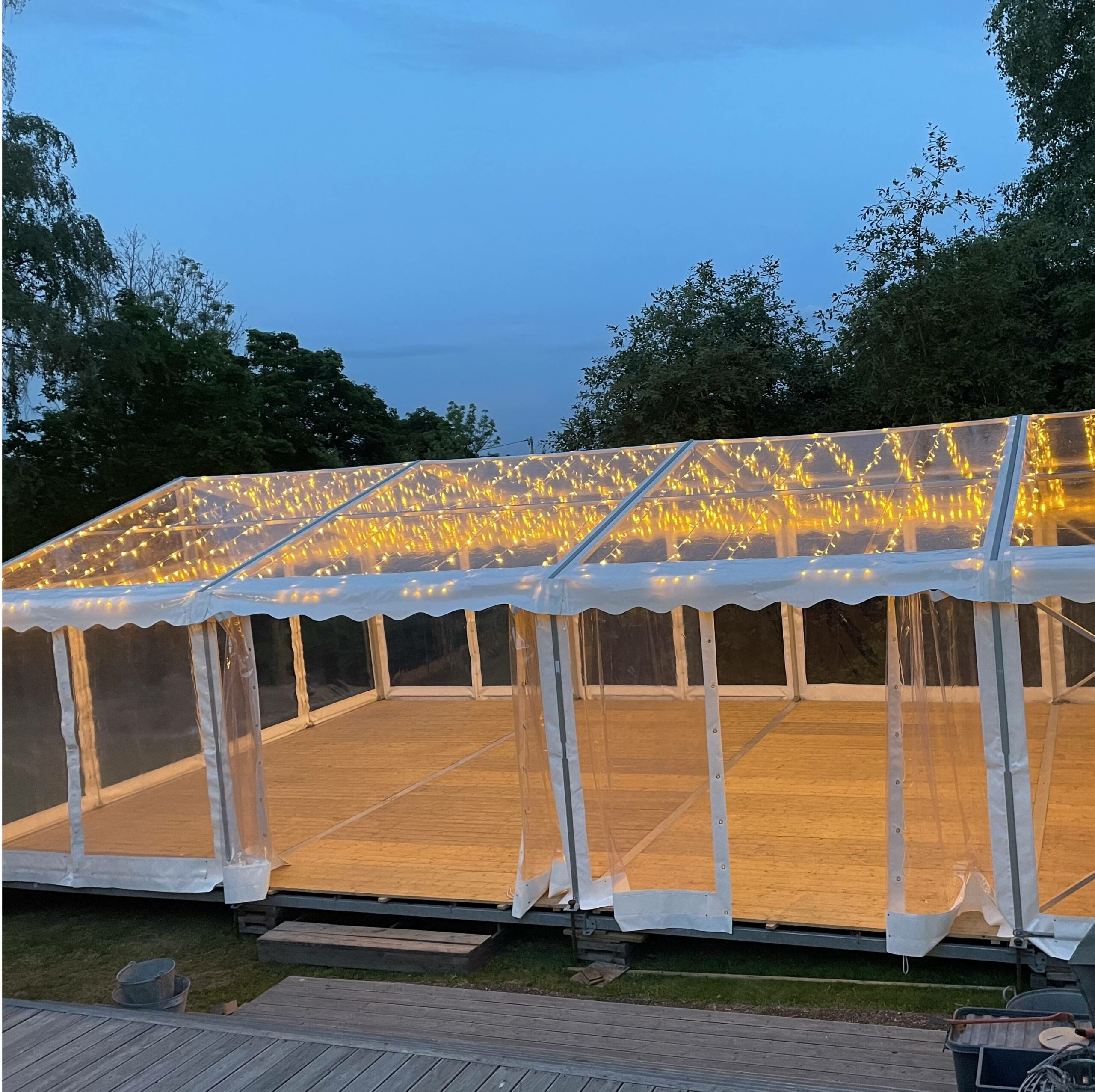 Evenemangshall med en bredd på 6 m. Byggs på längden om 3 m sektioner.