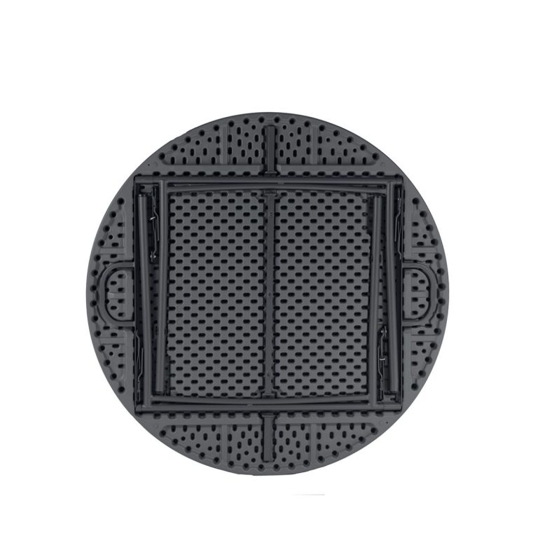 Hög kvalitet Zown bord är hållbara och slitstarka bord tillverkade i kraftig 45 mm mörkgrå HPDE, och med hopfällbart underrede av pulverlackerat stål med manuell låsning på benen, vilket ökar stabiliteten vid användning. Den tåliga plasten har även hög resistens mot fukt och små stötar samt mycket lång livslängd.